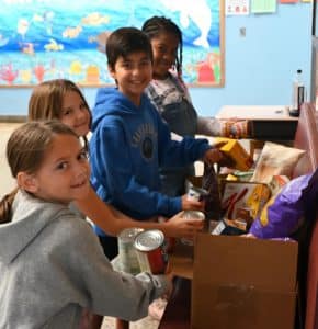 Photo Caption: Lee Avenue Elementary School students contributing to a districtwide Thanksgiving Food Drive that took place in October. Food donations were collected at each school throughout the district and will be donated to local food pantries. This effort was organized by the Hicksville Council of PTAs.