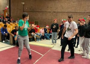 “Celebrating the holiday with them was very important,” said Ben. “For many, this could be their only gift. For others, it could be their only chance to win anything close to what we do in our matches. Coming off of a devastating loss the night before (at the Section I Dual Meet Championship), it was important to get a perspective on what loss means. We were lucky to have the opportunity to even wrestle a match, let alone compete for a section dual meet title.”