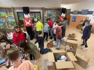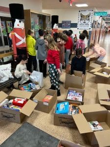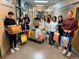 Photo caption: The SOUL Community Outreach Club at Walter G. O’Connell Copiague High School, led by social studies teacher Joe Mannix, ran a homeroom food drive at the school to help replenish the Eagle’s Nest food pantry. The whole school was involved including students and staff and the outcome was more than 35 bins filled with food.