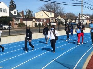 The run/walk event came about through club discussions on various social justice topics, with the theme dubbed as “We ALL Run/Walk on EQUAL Ground.” This was also in honor of Ahmaud Arbery, who was killed doing his daily jog/run on Feb. 23, 2020. The students wore masks, were socially distant and ran or walked 2:23 miles around the Memorial track in his honor.