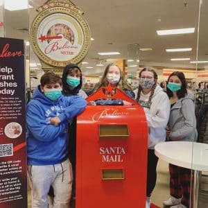 Photo caption: Smithtown High School West Leadership students in Joan Havranek’s class recently completed a project to recognized the hard work of the intensive care unit staff at St. Catherine’s Hospital in Smithtown. The class assembled 54 care packages – each containing a candle, Chapstick, hand cream, hot chocolate, a snack and a handwritten card –thanking the COVID warriors for their bravery and hard work during these past nine months. The students hand-delivered the packages to the hospital on Dec. 15.