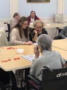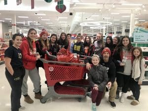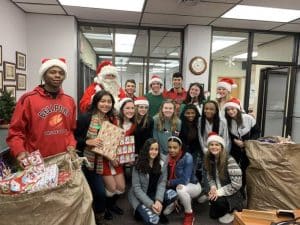 For the 13th consecutive year, an enthusiastic group of 89 students led by Maria Plitt worked collaboratively with the help of Eastport-South Manor Junior-Senior High School students to construct 36 fleece blankets. After the blankets were completed, students assembled bags that included crayons, drawing paper, small toys, a stuffed animal and hygiene products to be coupled with the blankets.