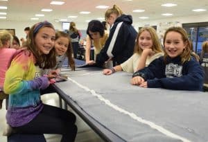 “Each year I’m amazed, watching over 100 elementary and high school students work together with laser focus on cutting and tying fleece blankets for children entering foster care,” Plitt said. “I am especially grateful for the support of the Eastport/Tuttle PTO in the purchase of 36 duffle bags. Eastport students really show their generous spirit bringing in donations to pack into the duffle bags.”