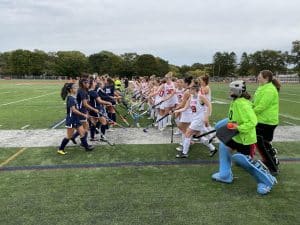 1) From left: Senior Caroline Ridings and freshmen Scarlett Dellacona, Ava Schwam, Hannah Seideman and Abbey McManus welcomed junior Aidan Slattery back to school.