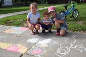 Photo caption 2: Youngsters enjoyed showing off their creative skills during Hemlock School’s Chalk the Walks event.