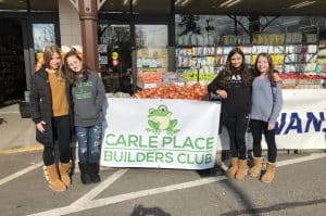 The Carle Place Middle School Builders Club and High School Key Club recently ran a Thanksgiving Food Drive to collect donations for families in need this holiday season. The middle school alone collected more than 300 non-perishable food items from student donations as well as more than 500 non-perishable items from their food drive at North Shore Farms.