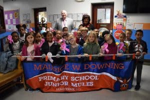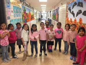 Photo caption: The members of the Hampton Bays Elementary School service organization K-Kids recently donated $400 to the American Cancer Society as part of their 14th annual Denim Day fundraiser. They raised the funds by selling breast cancer awareness bracelets to fellow students, teachers and administrators. Students and staff also wore jeans and the color pink on Oct. 26 in honor of the cause.