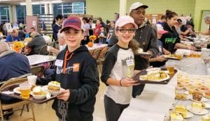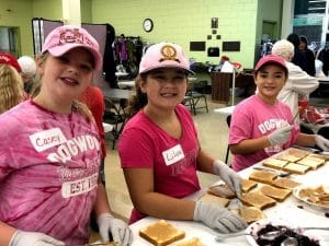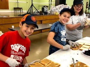 Photo caption: On Oct. 27, students from Great Hollow Middle School and Dogwood Elementary School in the Smithtown Central School District joined forces to help fight hunger. Members of the schools’ Peanut Butter Gang community service clubs visited Hospitality, Too soup kitchen in Brentwood. They made peanut butter sandwiches for distribution at various locations on Long Island and in New York City, and also helped serve a hot lunch to soup kitchen guests. In addition, the students distributed Halloween costumes that were collected at drives held in both buildings.