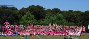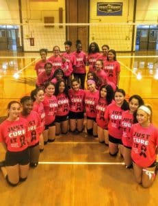 Photo Caption: The Massapequa High School girls varsity swim team recently hosted its Swim for a Cure meet for Pediatric Cancer Awareness Month.