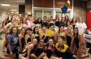 The swimmers raised more than $400 and a table full of items during their Swim for a Cure endeavor with the help of their opponent and friends from Garden City Swim and Dive team.