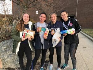 Photo caption: Smithtown High School West’s girl track and field team recently held a toy drive fundraiser to benefit the Guide Dog Foundation of Smithtown and America’s VetDogs. The team collected chew toys which were donated to the center in mid-January.