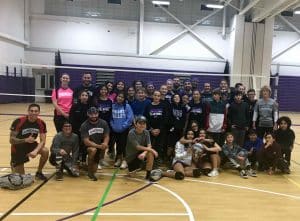 Photo caption: Members of the Hampton Bays Middle School Student Council recently provided the Airborne Tri Team with a $140 donation. To raise the funds, the council members sponsored a volleyball tournament on Jan. 11 in which students could play alongside Airborne Tri Team members.