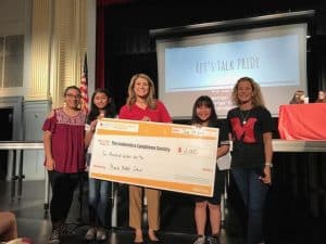The club raised funds through a Pennies for Patients Drive, as well as by hosting a Pie-In-The-Face Contest for additional donations to the cause. Kerianne Stein, a representative from the society, visited the school on June 12 to accept the donation.