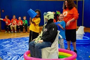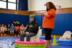 During a basketball-themed obstacle course, students were timed as they raced through the different stations. Students recorded their time on a poster for the different classes to attempt to beat. The Copiague Middle School students are hoping to meet or exceed their goal of $5,000 raised during last year’s event.