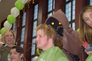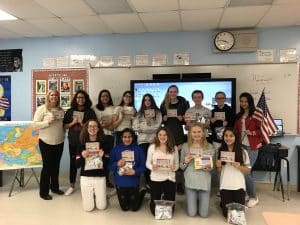 The completed blankets were delivered to the Child Life administrators in Stony Brook Hospital’s main lobby this March. Students attending the drop off learned how the blankets would go to children who were ill and in need of a little extra comfort.