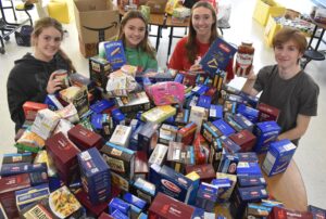 The month-long food drive featured donation bins at the high school, middle school and Harbor Elementary School, along with three drop-off spots in the community. All the food was collected on Nov. 25 and brought to the high school cafeteria, where student council members sorted it afterschool by category. Items included canned vegetables, cereal, cranberry sauce, pasta and sauce, potatoes, rice and stuffing.