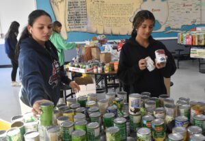 3: Sophomore Isabella Dominguez, left, and freshman Isabella Matos checked expiration dates and sorted canned goods.
