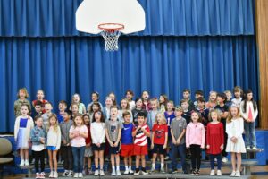 Third, fourth and fifth grade students also performed a powerful rendition of “America the Beautiful”, followed by the “Armed Forces Medley.” Veterans in attendance were invited to stand as their respective military branch was honored in the song. The assembly concluded with a unified singalong of “God Bless the USA,” bringing together students, faculty and veterans in a moment of patriotism and reflection.
