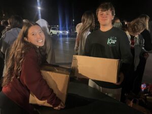 The entire district was divided into 49 geographic zones. Over 200 students volunteered and were placed in groups to distribute flyers to more than 8,000 households during Veterans Day weekend, making the community aware of the collection date of Nov. 15. That evening, the students went back to their assigned zones to collect any donations that the community left for donation.