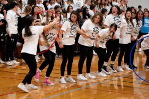 Students from all four grades represented their classes in an oversized volleyball game, relay races, a dance competition, tug of war and the famed Pirate Relay.