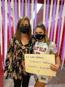 IMG_4805: East Islip High School varsity girls basketball captain Kamilah Pasha helped spearhead a fundraising effort by the team on behalf of the Alzheimer’s Foundation, whose representative Rita Adrion was in attendance at the team’s Dec. 16 game.