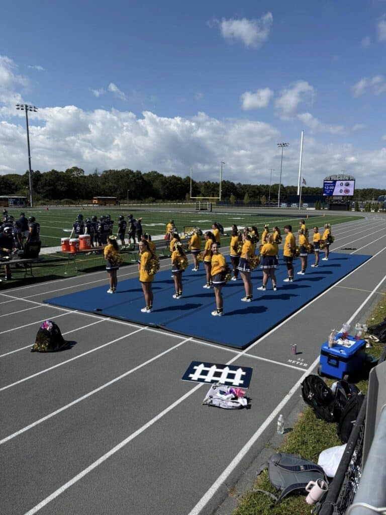 D: The Eastport-South Manor varsity cheerleaders wore gold in support of the football team’s “gold-out” to raise money for the Bentley Foundation.