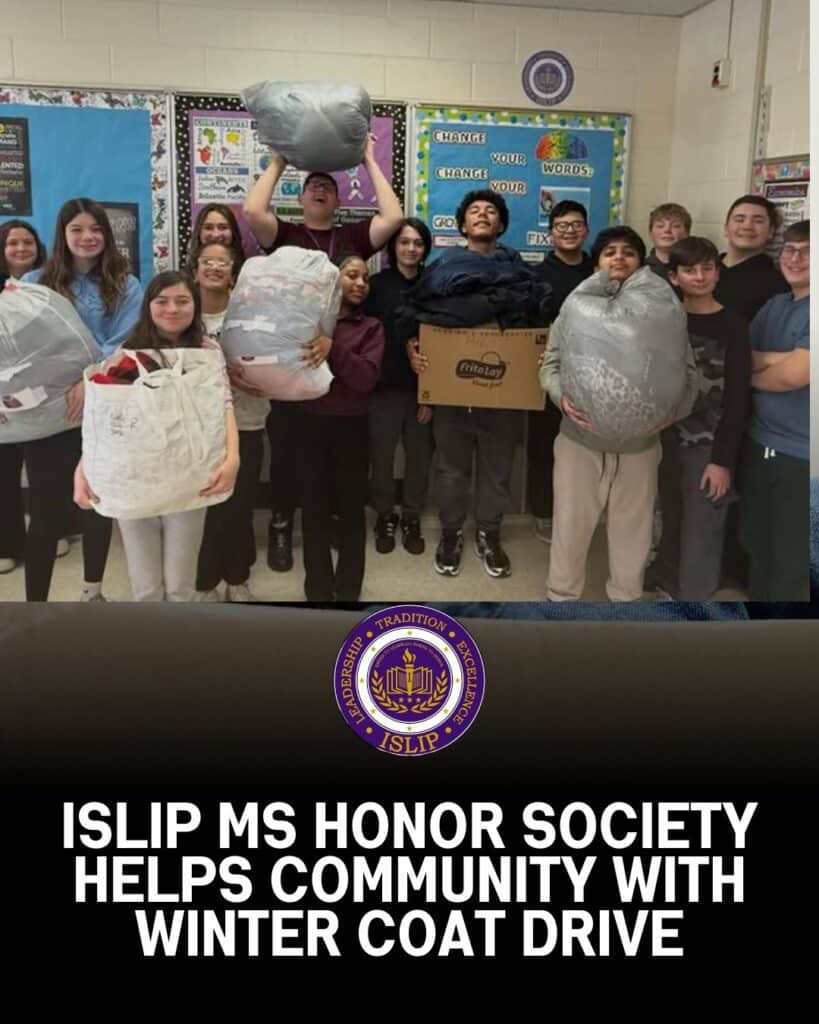 Students at Islip Middle School proved that leadership is rooted in service as the National Junior Honor Society successfully wrapped up its winter Coat Drive, helping ensure community members stay warm during the coldest months of the year.