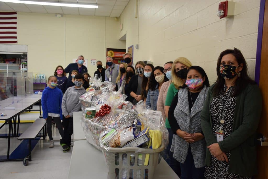 After holding a schoolwide food drive, Commack Road Elementary School students, faculty and parents came together to assemble food baskets for Islip families in need this holiday season.