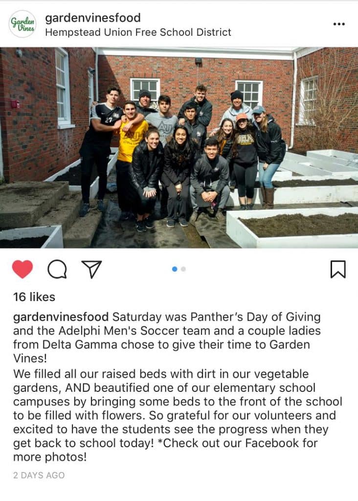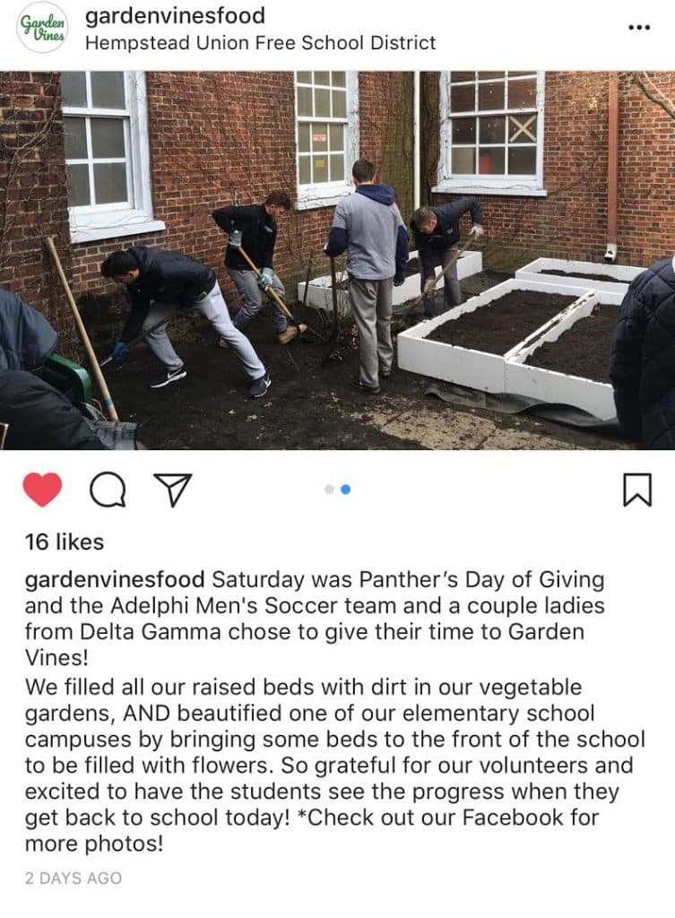 Saturday was Panther’s Day of Giving and the Adelphi Men’s Soccer team chose to give their time to Garden Vines!