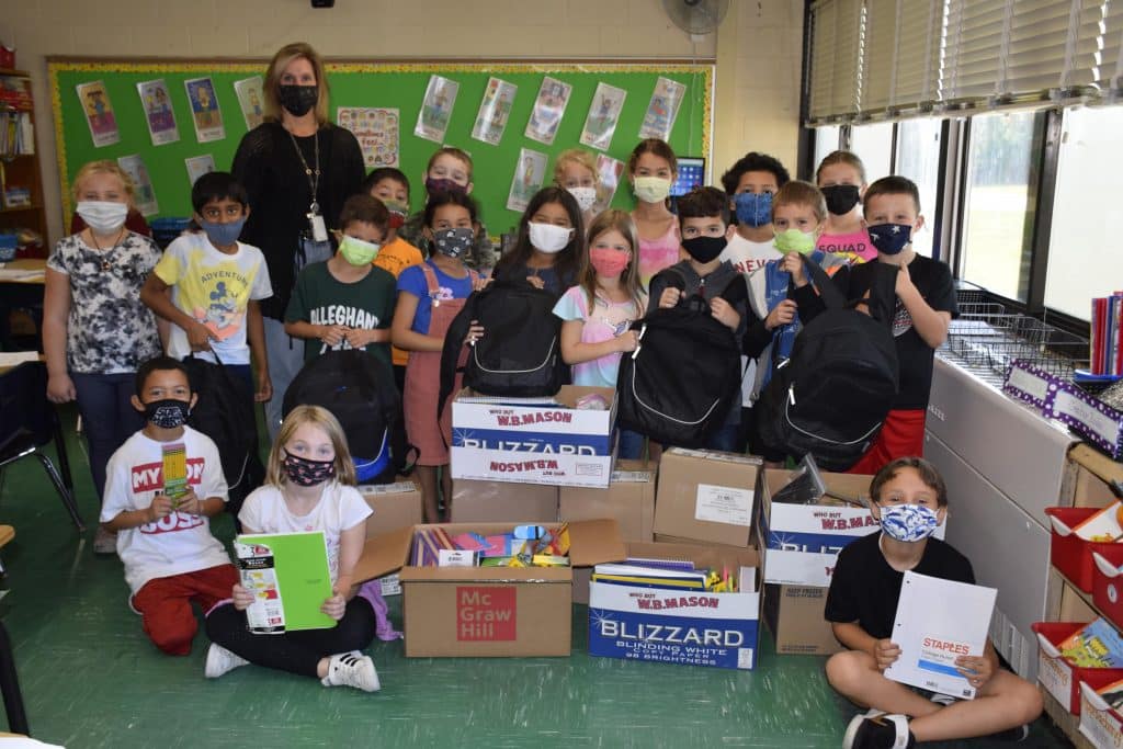 Photo caption: Second grade students in Kara Kilmeade’s class recently took part in a class citizenship project in which they collected school supplies to support the Liberia Project.