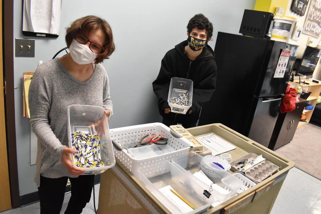 The focus of the CCC class is on vocational skills, and Ms. DePalma said that this was a creative project for students that also supports health and safety protocols during the COVID-19 pandemic. With the chains, teachers and staff can keep their masks around their neck – and avoid putting it down on a desk or table – when taking a mask break such as when alone or when eating.