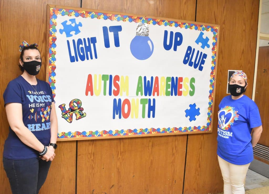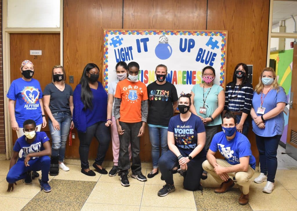 Students and staff at Edmund W. Miles Middle School took part in the Light It Up Blue campaign, and were encouraged to wear blue to school on Thursdays and Fridays throughout April. The school also made a donation to Autism Speaks.