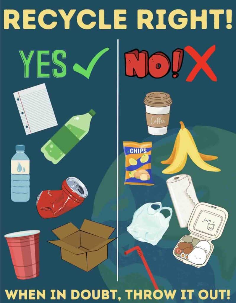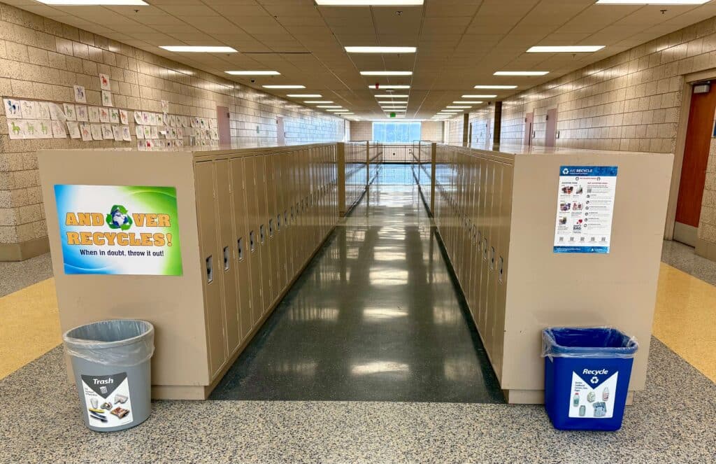 A main focus of this work has been reducing contamination in the recycling bins. When non-recyclable items are placed in recycling bins, this causes entire loads to be discarded in the trash. The club has emphasized the message: “When in doubt, throw it out,” and has set a goal of reaching 10% or less contamination in the school’s recycling.