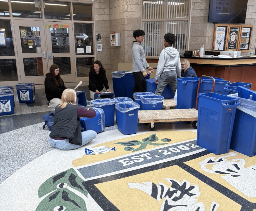 The Leadership team took a simple idea from a brainstorming session—that sustainability matters—and turned it into something students can take action on every single day. It just takes one walk around the halls of Andover High School, and the product of their recycling efforts is highly visible. From improving recycling habits in the building to working with younger students in the district, these efforts are helping create change. Students are not only learning what it means to be environmentally responsible, but they are also encouraging others to do the same. The projects they have carried out have a lasting impact; building awareness, creating new habits, and empowering students to make a difference in their school and community.