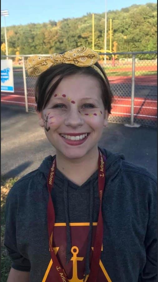 The Arlington Football players are honored to wear this sticker on their helmets in honor of Emma. Emma was a sophomore at Arlington High School when she passed away after a battle with cancer last year. You are missed Emma, and will never be forgotten!