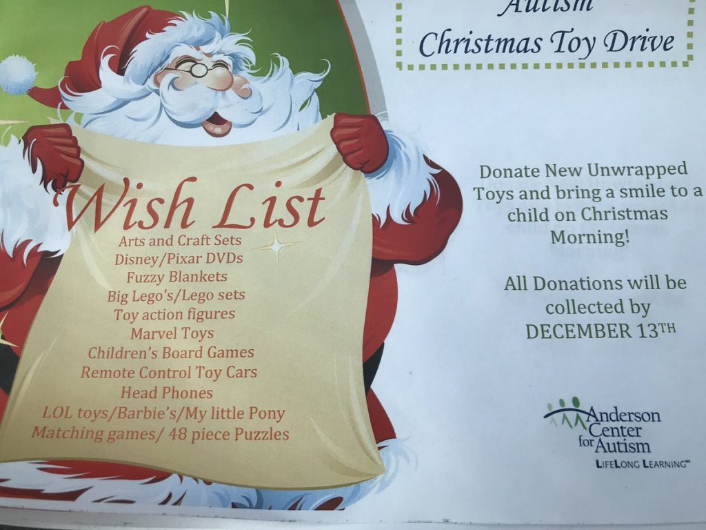 We have a parent/youth club coach that works at Anderson Center for Autism. In past years we pitched in by beautifying the property of an Anderson home near our campus. Last year the weather did not cooperate on our open weekend, so we shifted to collecting new, unwrapped toys for them. We had the wrestlers and parents drop the toys off at practice, then brought them to our youth coach’s house. This year we have neither the ability to cram 45 kids into a yard nor the ease of being in the practice room leading up to the holidays, so I will be using my home as a drop off location for our youth, middle, and high school programs. On the last day of collection, we’ll do a large drop off in the morning so we can take a picture and then bring them to the coach’s house so he can bring them into work the next day.