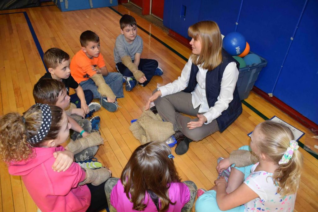 Miller Avenue School students participated in a number of Autism Awareness activities throughout the week of April 3 as part of Autism Awareness month. The week kicked-off with the Shoreham-Wading River students meeting with Shoreham-Wading River High School freshman Frankie Fontinell and his mother, who wrote a book about their experiences of living with Autism. Students also took part in a number of hands-on activities during their gym classes that simulated what its like to have Autism, including trying to read a book with loud noises in their headphones.