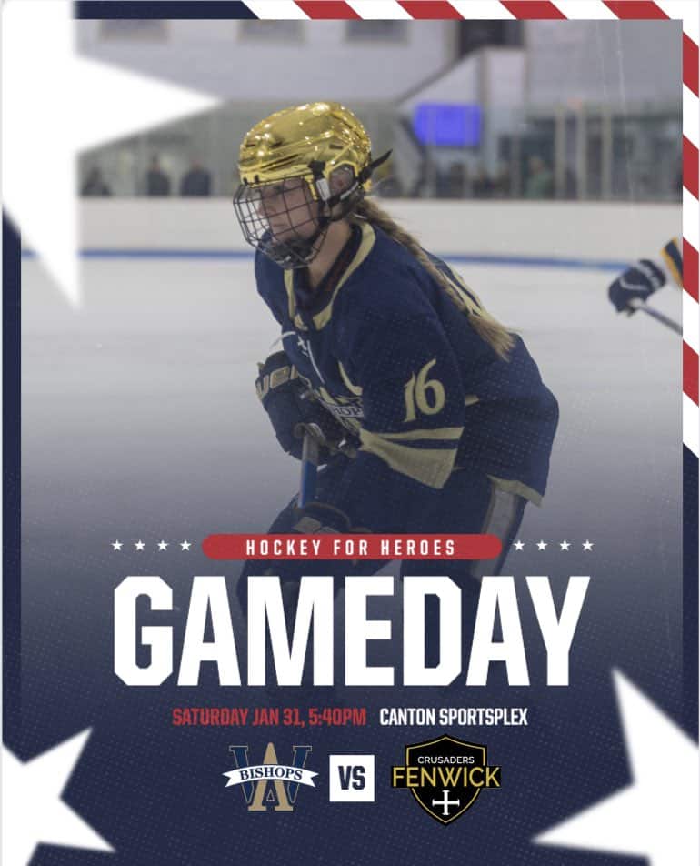AWHS Girls Ice Hockey turned the rink into a place of gratitude and purpose during its annual Hockey for Heroes game, as the Bishops faced off against the Crusaders of Bishop Fenwick High School.
