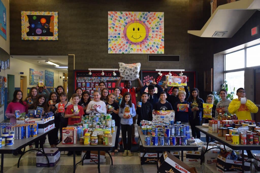 A: Shore Road School students in Bellmore collected more than 600 items during the school’s annual Thanksgiving Community Food Drive to assist struggling families in the community.