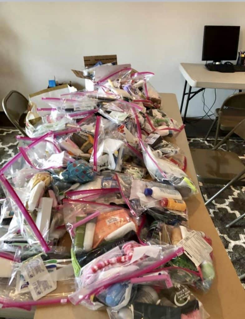 The Lions Heart Girls 2020 Manorville chapter collected donations and Recycled water bottles to buy toiletries to make 100 Blessing Bags for the homeless. Thank you to everyone who contributed items. #lionsheartstrong