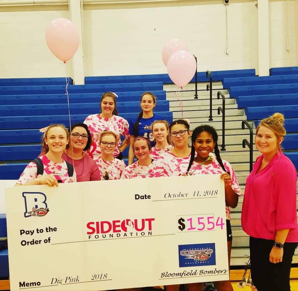 On Thursday, October 11, 2018, the Bloomfield Bombers girls’ volleyball teams will Dig Pink! Bloomfield will host Harley Allendale Columbia in a fundraiser volleyball tournament as they collaborate with the Side-Out Foundation, a national non-profit organization which empowers athletes to fight Stage IV breast cancer by raising funds to sponsor targeted therapy clinical trials.