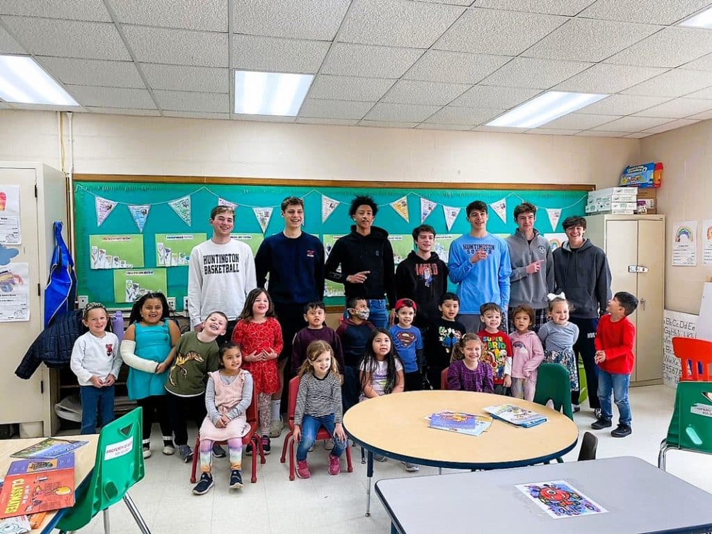 Seven Huntington High School varsity boys’ basketball players spent time in a pre-kindergarten program classroom at Southdown Primary School reading to the youngsters and sharing their love of books. The little kids enjoyed every minute of the visit.