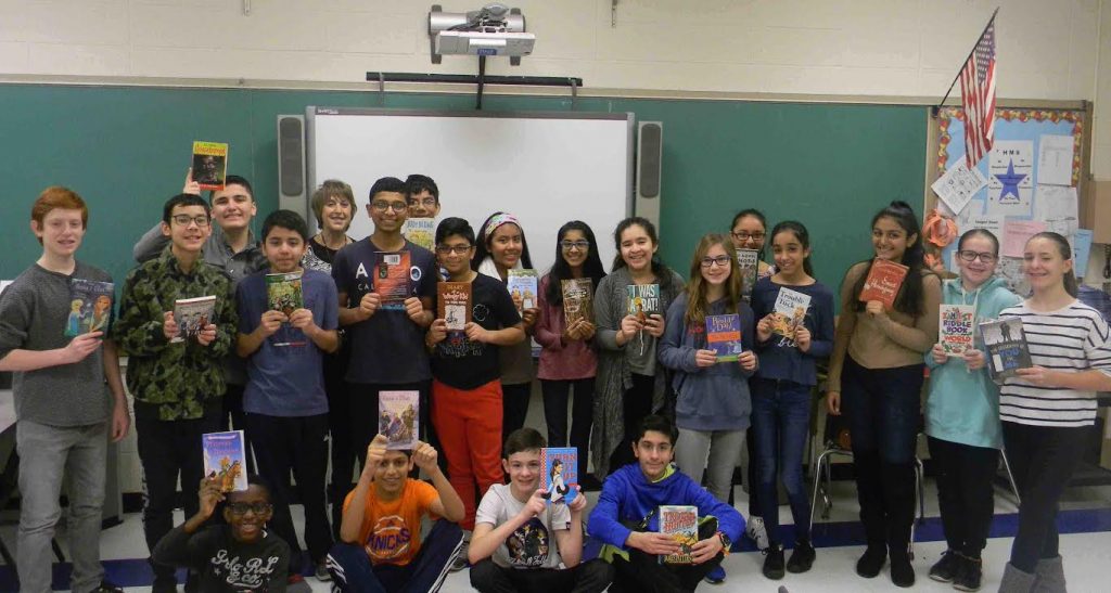 National Junior Honor Society students at Hicksville Middle School received a visit from Book Fairies, an organization that collects books for all age groups and distributes them to students in need on Long Island. Under the direction of advisor Sara Smith, students collected eight boxes of gently used books to donate to the group.