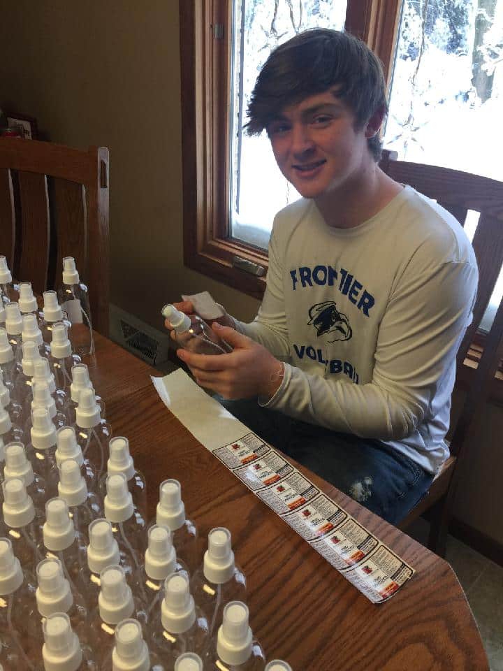 11 players & 3 coaches from our boys volleyball program volunteered at home over winter break assembling 5,850 hand sanitizer bottles for