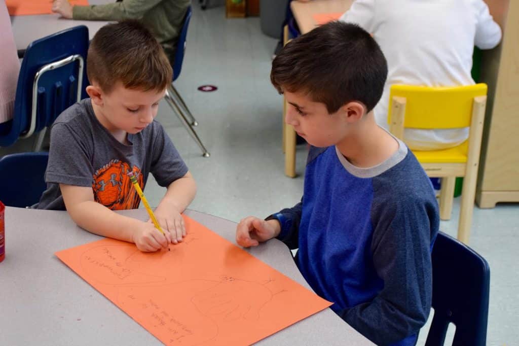 Kindergarten and fifth-graders came together at Fifth Avenue Elementary School in the Northport-East Northport School District to spend time talking about gratitude and creating hand-traced thankfulness turkeys on Nov. 15.