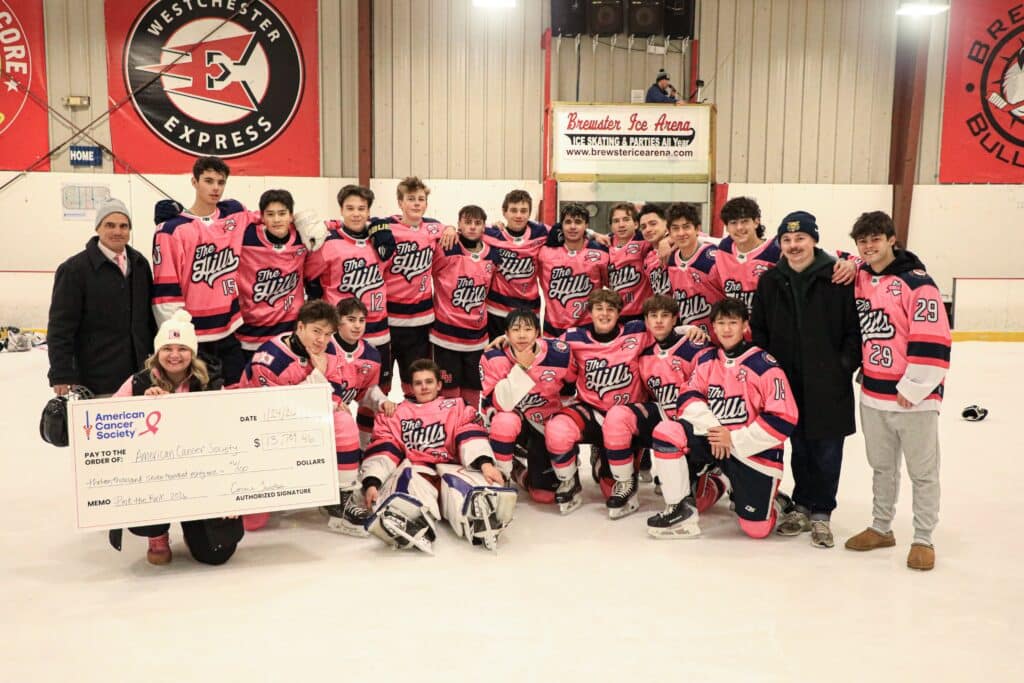 ARMONK, New York — The Byram Hills Boys Varsity Ice Hockey Team raised $13,789 for the American Cancer Society at its 14th annual Pink the Ring game, sending the program’s fundraising total for breast cancer research and support over $100,000.