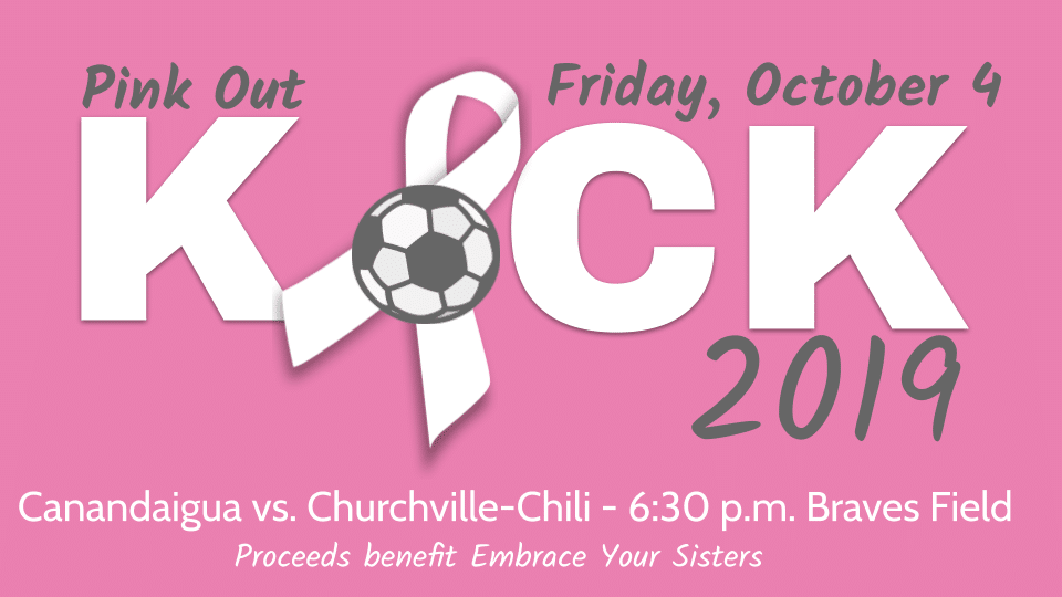 The girls’ varsity soccer team will host its annual game on Friday (10/4) at 6:30 p.m. see the attached graphic. The photo includes our JV and Varsity team. The event includes a bake sale, t-shirt sales, and raffles. All proceeds go to a local organization that supports people with breast cancer, Embrace Your Sisters. Embrace Your Sisters provides emergency financial support for people with breast cancer and serves Livingston, Monroe, Ontario, Seneca, Steuben, Wayne, and Yates counties.