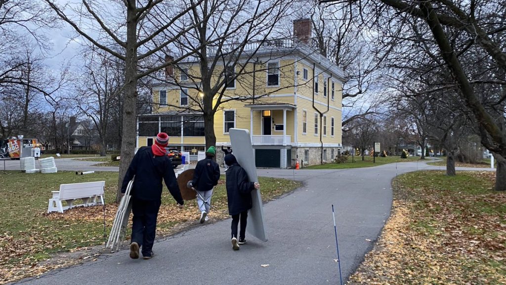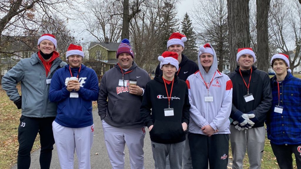 Student athletes from both teams (boys hockey and boys basketball) volunteered at the Granger Homestead Holiday Village. Granger Homestead is a federal style home built in 1816 in Canandaigua and the students supported parking and clean up.