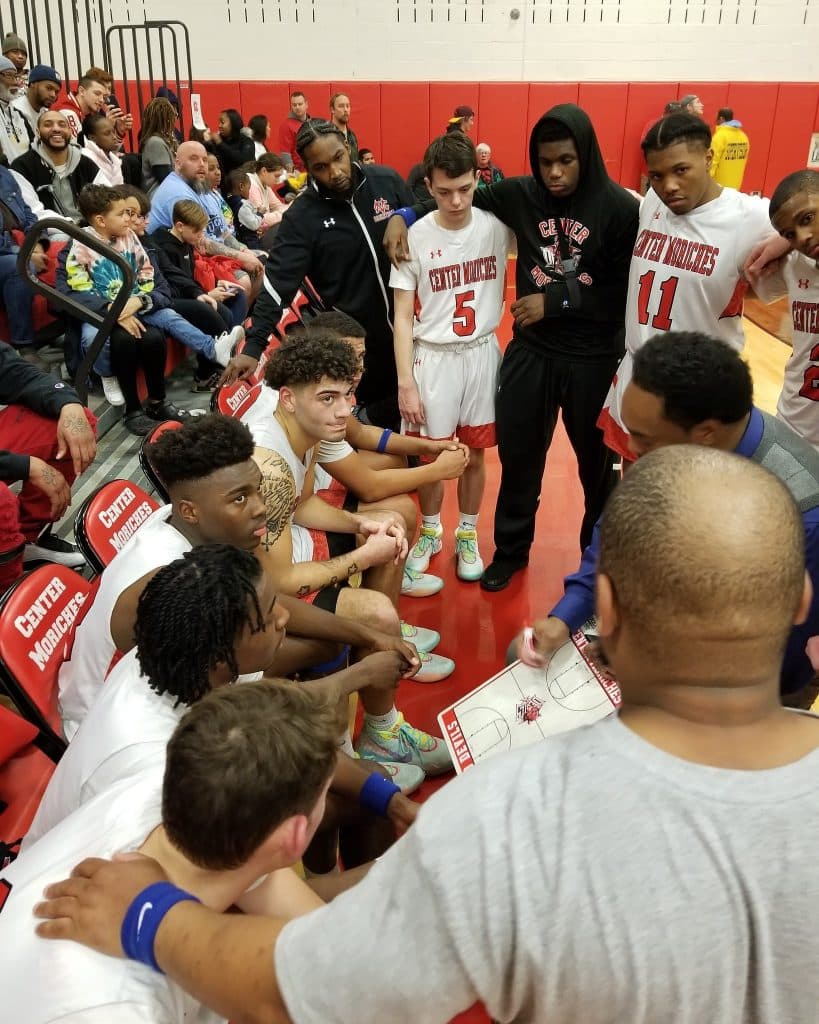 Center Moriches and Bay Shore wrestle in blue for 8 year old Thomas Valva supported by Section XI coaches association via the Section XI singlets