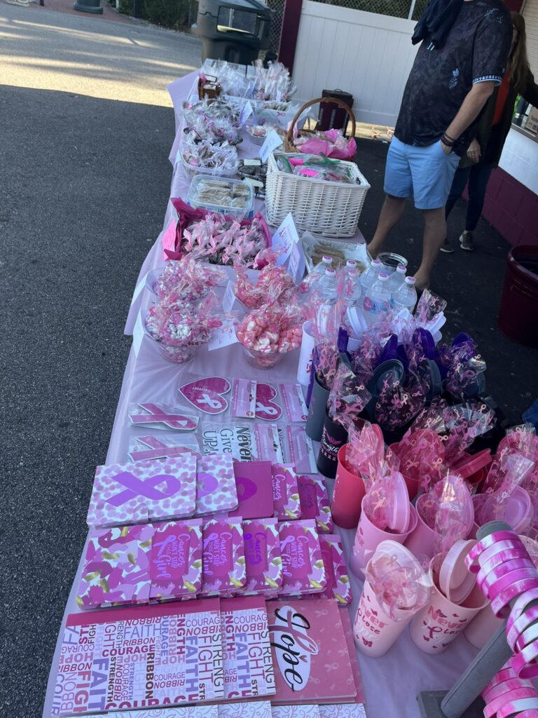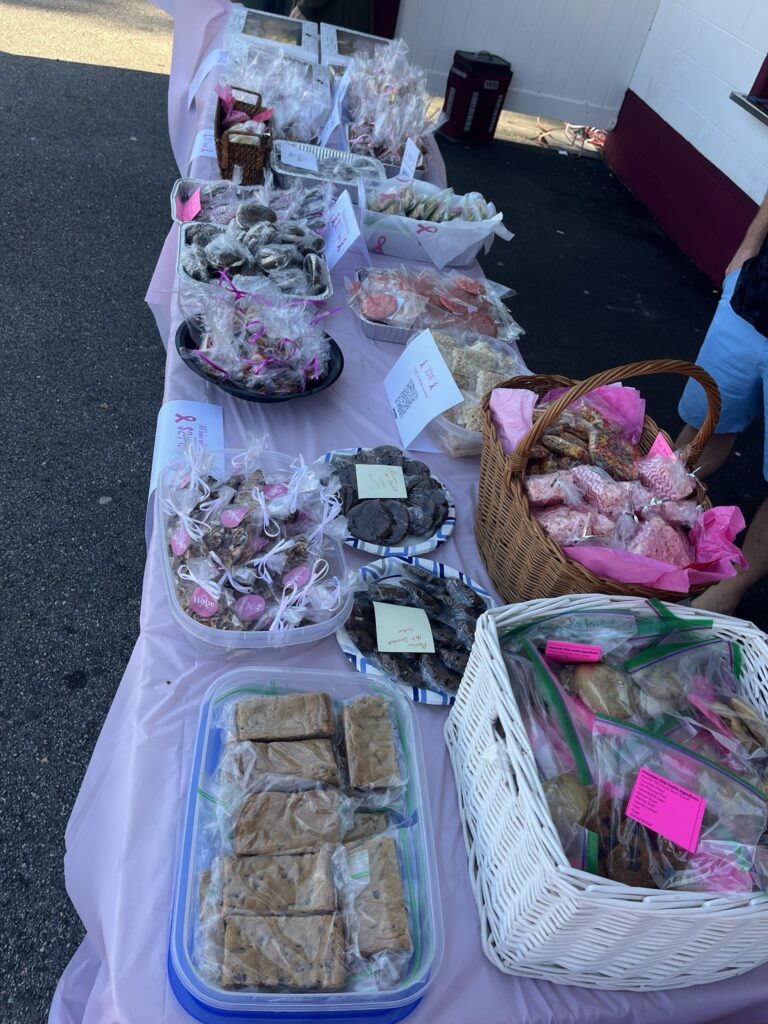 On game day, both the JVA and Varsity teams played back-to-back matchups against Westford Academy, with both teams wearing pink jerseys in honor of the cause. The stadium was decorated by the Chelmsford players, transforming the field into a symbol of hope and solidarity. Parents and families supported the initiative by donating baked goods and running a bake sale during both games. Leftover treats were then brought to the school’s Pumpkin Palooza later that day, extending fundraising efforts even further.